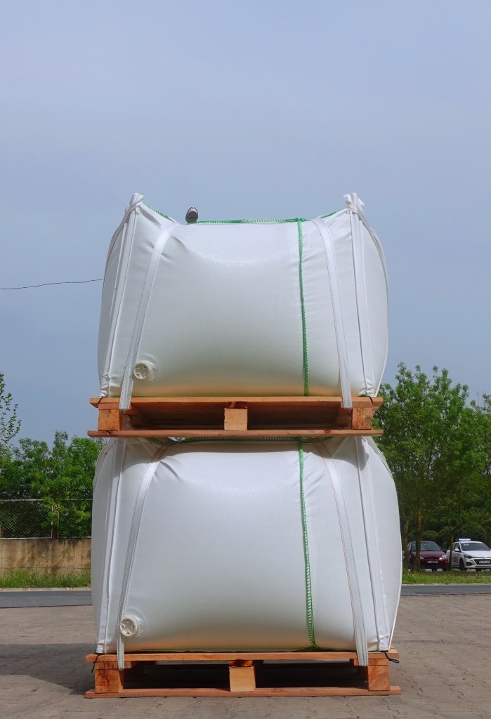 Explore our innovative Ccubicus technology, introducing a cubical shape that not only saves space but also enhances durability. The collapsible design, featuring an exterior made of woven polypropylene and woven fabric with polypropylene supporting tubes, is further complemented by a ‘cassette’ made of two plies of polyethylene with carton protection.