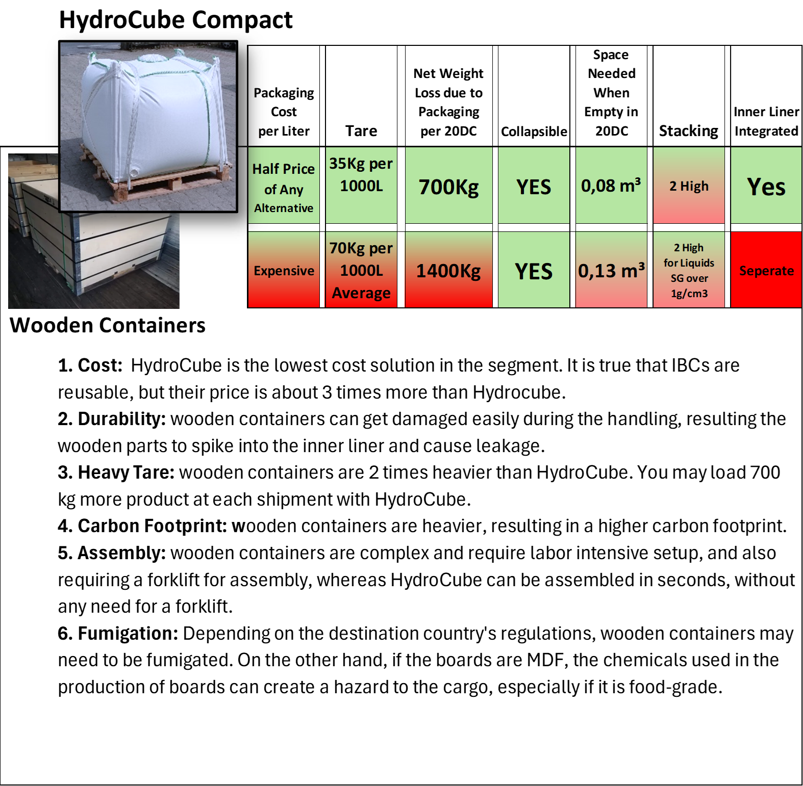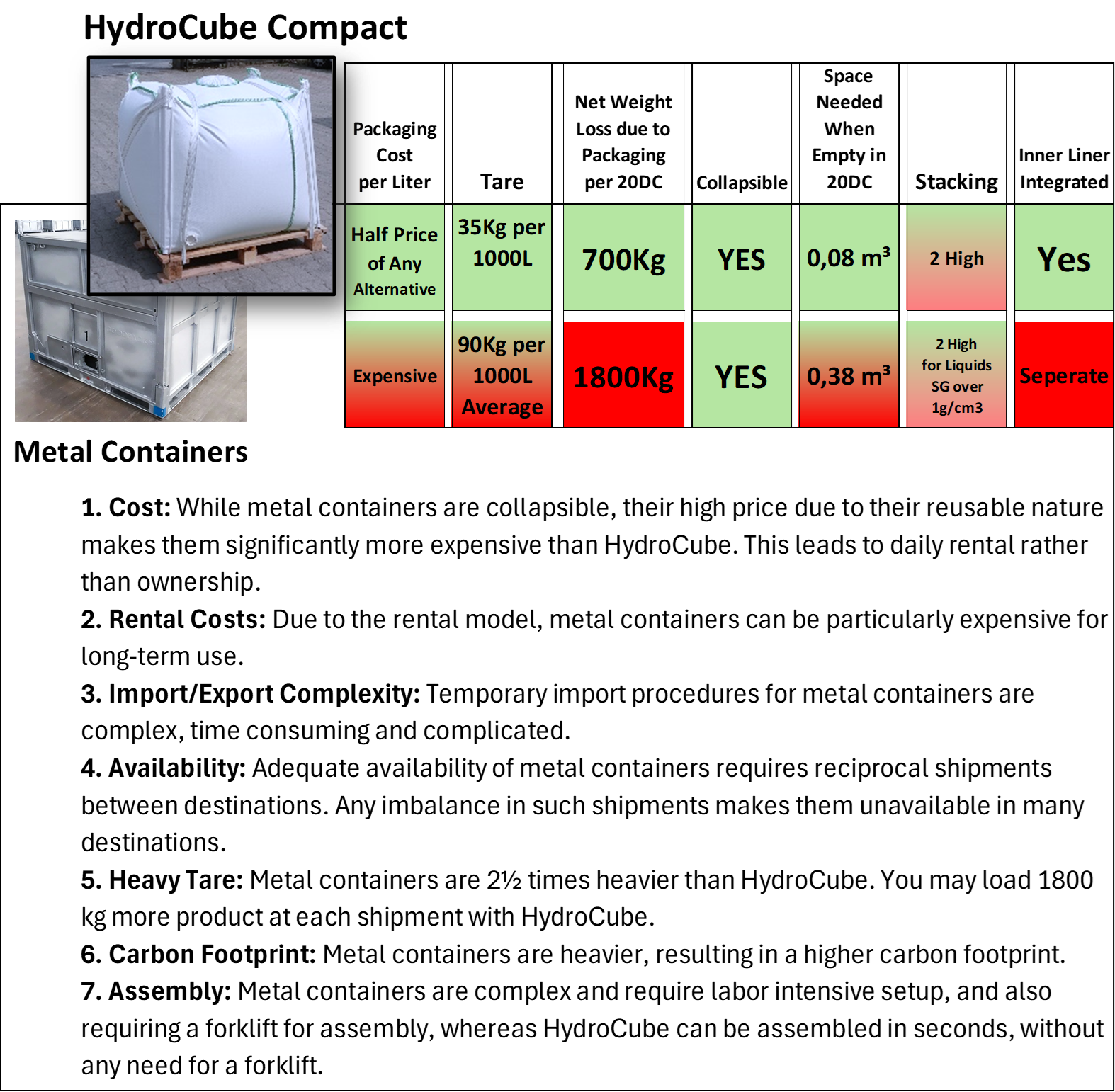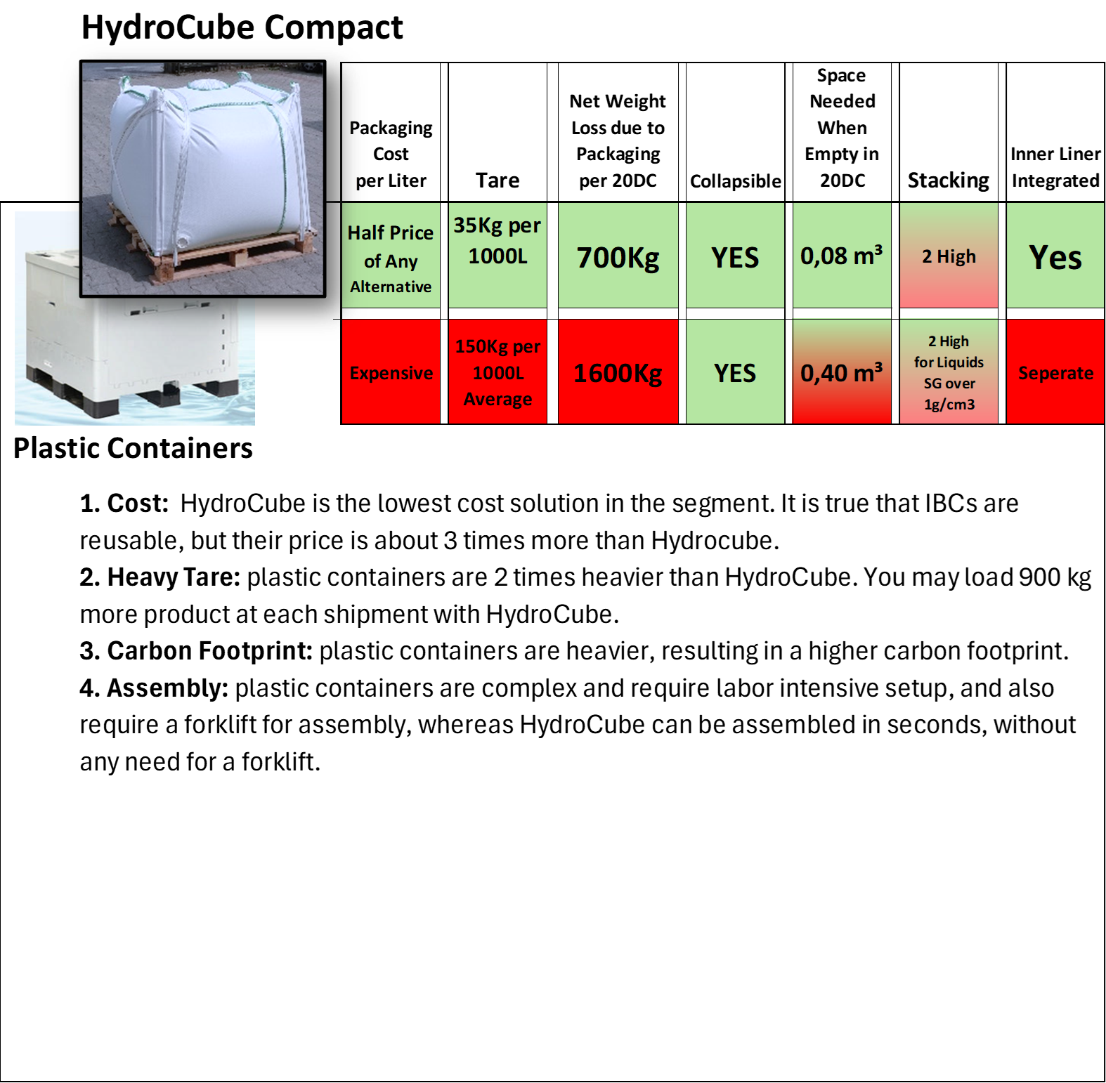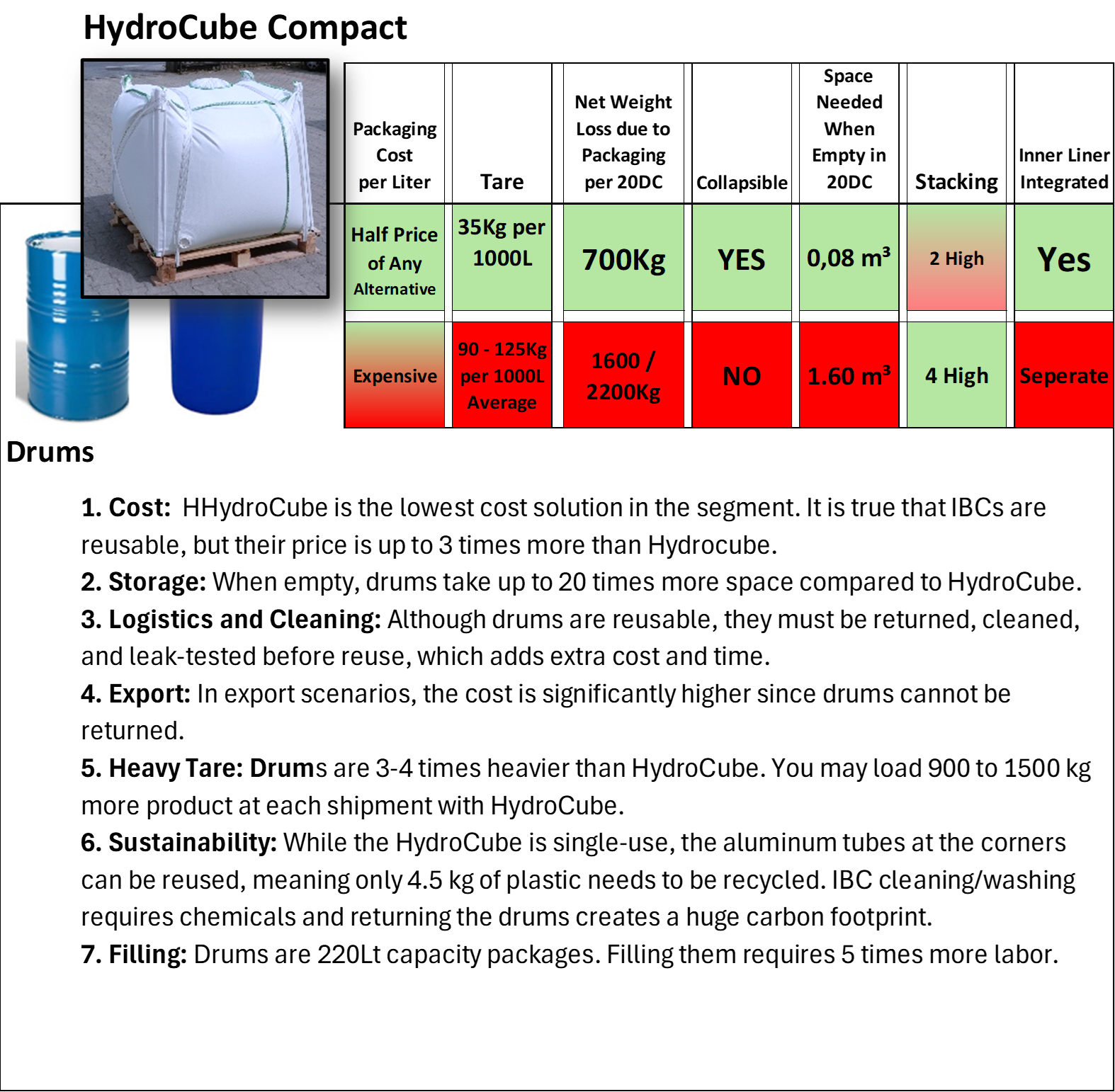 Comparison of HydroCube Compact with alternative Packaging