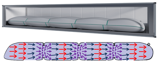 Caterpillar technology is designed to tackle the above issues for liquids as long that are not classified by the UN as hazardous. It uses a long mono block tube/bladder that has several “rings” to shrink down the total circumference at certain areas to compartmentalize the bladder—similar to a caterpillar.