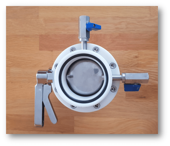 A flexitank with regular valve will lose its aseptic property if it is not coupled to the filling hose aseptically. At LiquA, we have developed a sophisticated aseptic valve which allows for sterilization when the valve is connected to the extension hose.