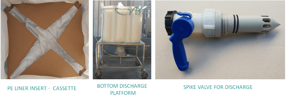 The K-Flex has similar characteristics to a standard IBC. You can fill it in the top and discharge through the bottom. Compared to the IBC, the K-Flex is a very cost-effective solution. The only restriction on K-Flex is that it cannot be used with hazardous products.