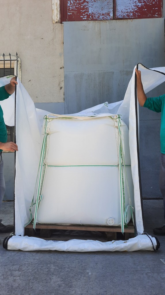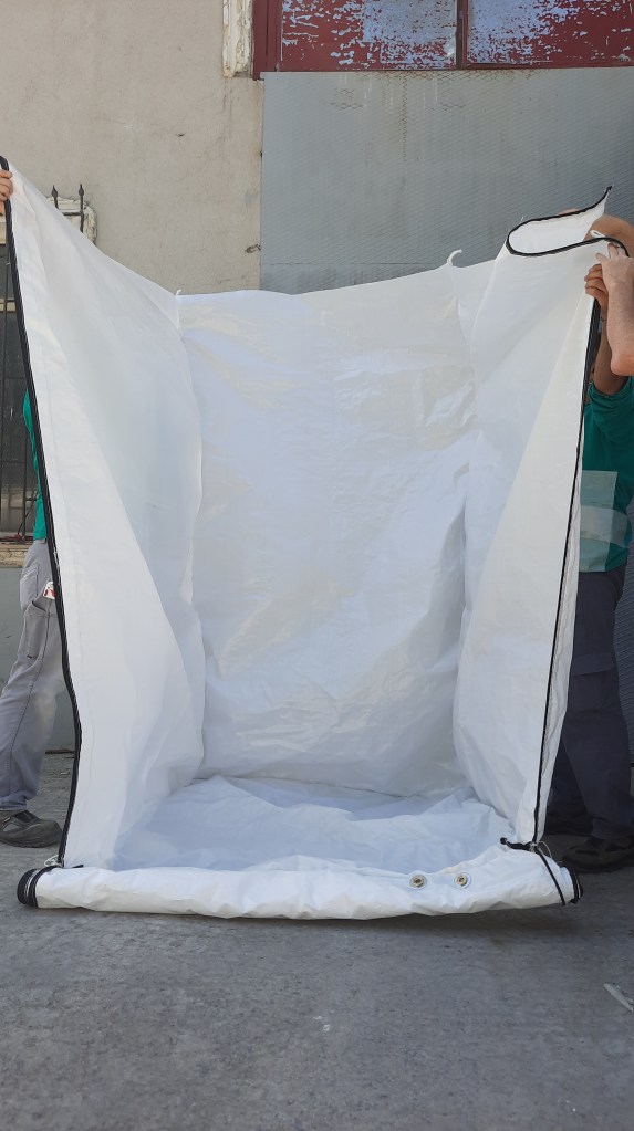 Our Ccubicus technology provides a cubical shape that saves space, offers enhanced durability, and is collapsible. Its composite form features an exterior made of woven polypropylene and woven fabric with polypropylene supporting tubes. The system requires a “cassette” which is made out of two plies of polyethylene with a carton protection.
