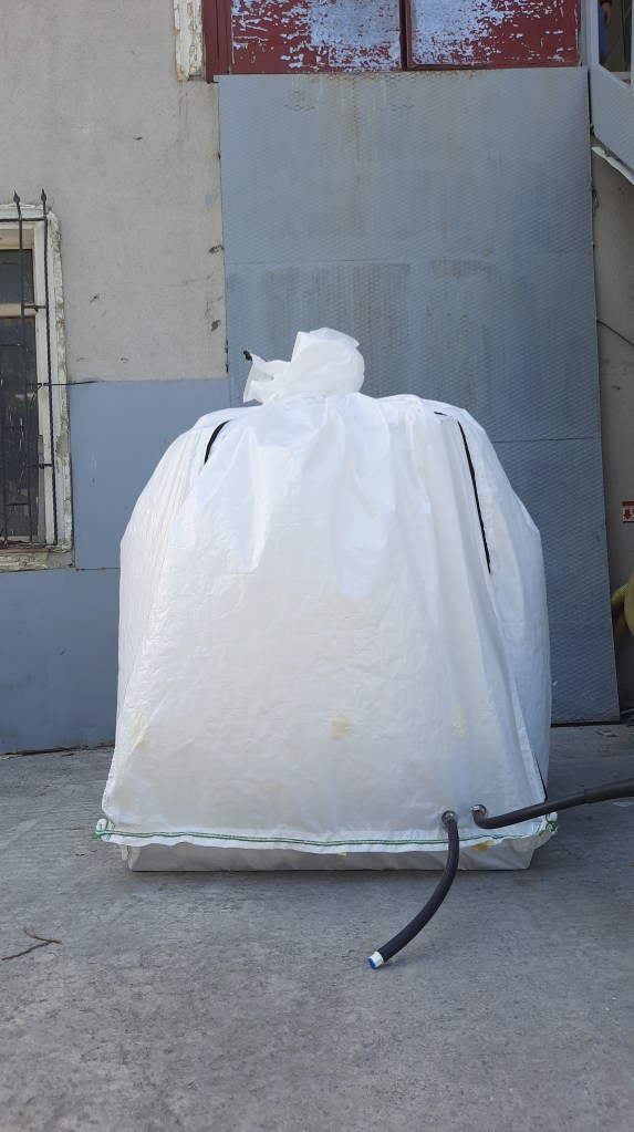 K-Flex is a low cost alternative for IBCs. It is easy to store as it is collapsed when empty. K-Flex is a good solution both for shipping and storage at about half the price of an IBC.